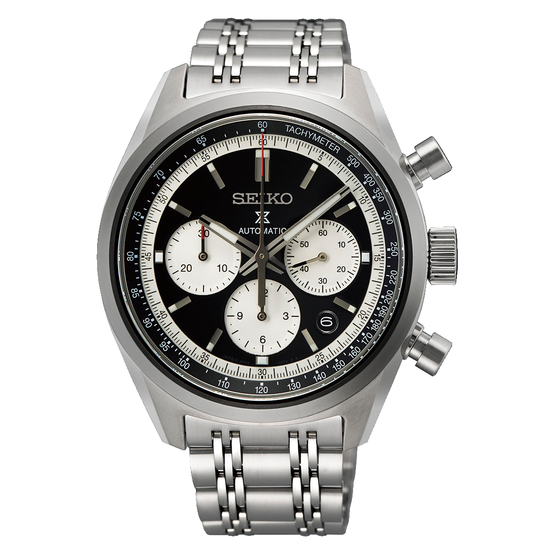 En su interior incorpora el calibre automático Seiko 8R48, un movimiento de manufactura con carga manual, 34 rubíes y una reserva de marcha aproximada de 45 horas. Este sofisticado mecanismo integra cronógrafo de hasta 30 minutos y 12 horas, función de parada del segundero y visualización de la fecha, ofreciendo una medición del tiempo precisa y fiable.